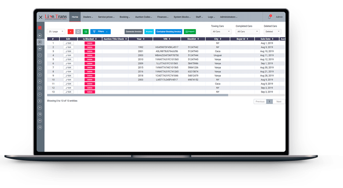 After a year of development, we ended up with a comprehensive ERP business tool. It handles high loads and big data packages. Users can track any vehicle from the first auction lot to the final delivery to the client. Data about cars, customers, and contractors is stored inside the system, is available in a few clicks. On top of that, Lion Trans ERP relies on sophisticated access management that improves security.