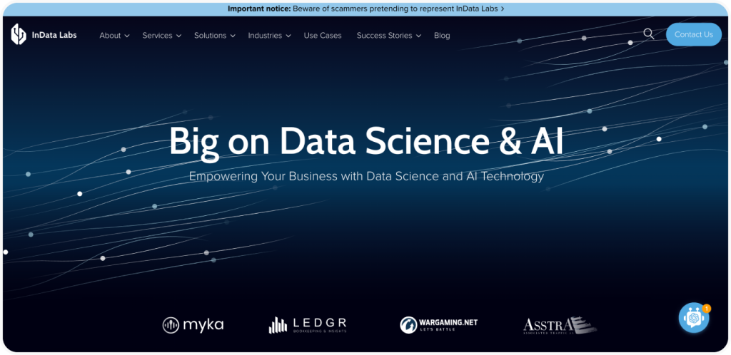 InData Labs is a data science and AI-concentrated development company that leverages the power of AI, machine learning, natural language processing, and big data. They have a strong focus on NLP and generative AI solutions. The main specialization is providing AI services from consulting to development and further implementation. It is engaged in a variety of industries, including advertising, marketing, healthcare, eCommerce, logistics, sports, and gaming. Also, the company is a certified AWS partner.